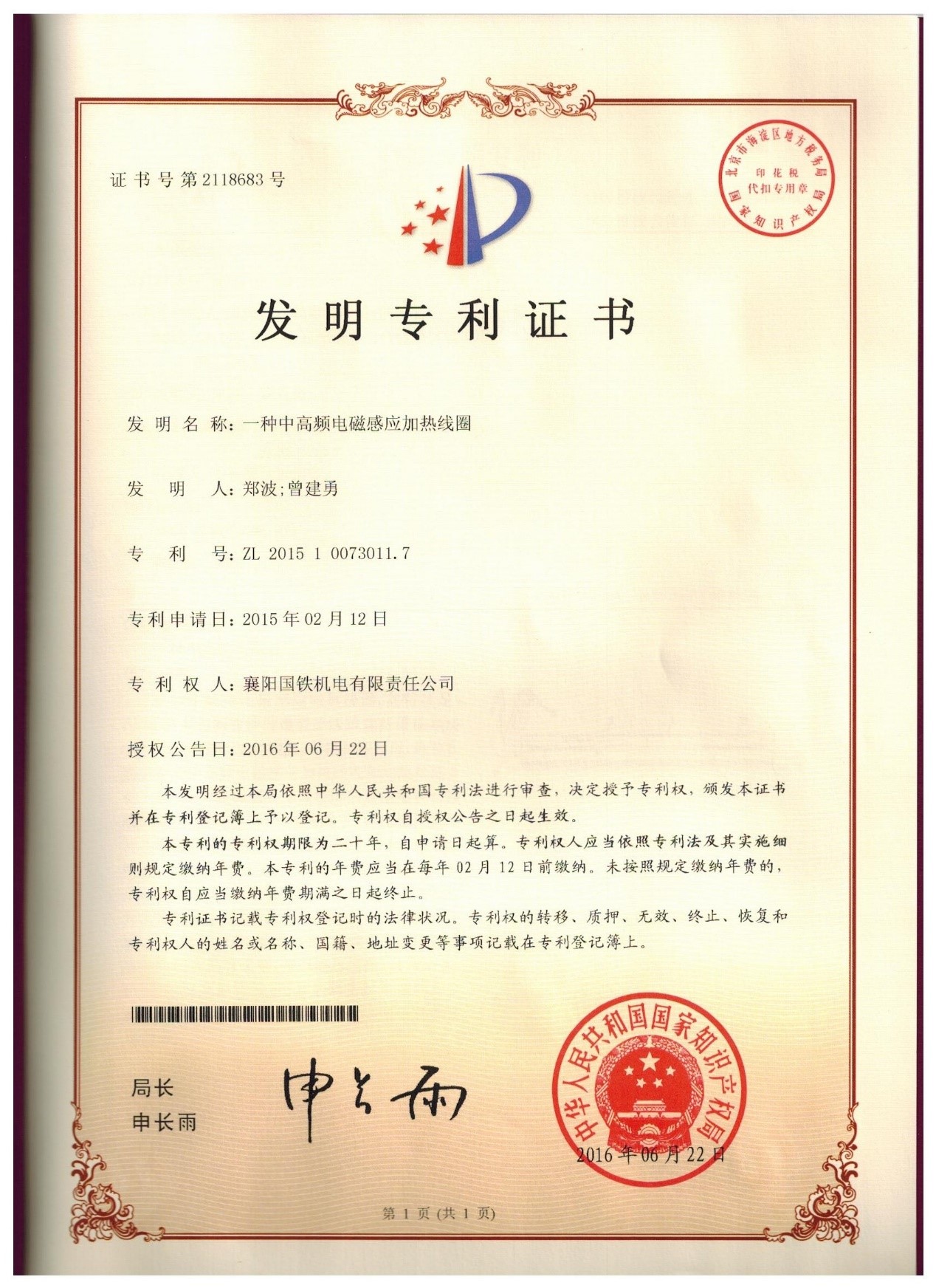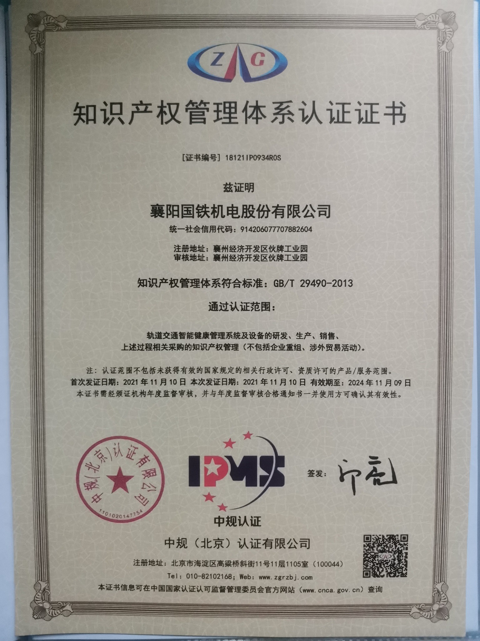 知識產權管理體系認證證書