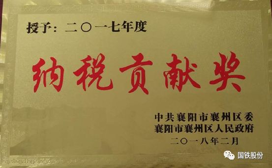 襄陽國鐵榮獲2017年度“納稅貢獻獎”