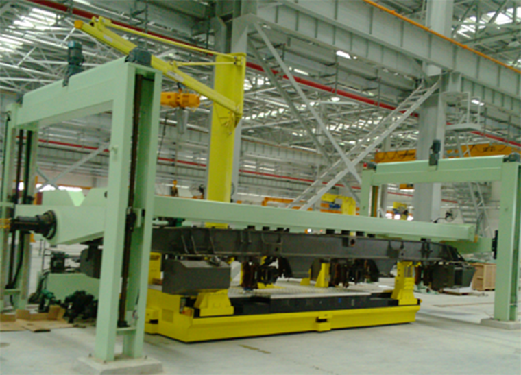 構架翻轉架機是車輛段與綜合基地檢修主廠房轉向架檢測間內的配套設備,用于轉向架構架的翻轉作業,設備安裝在轉向架檢修線上。